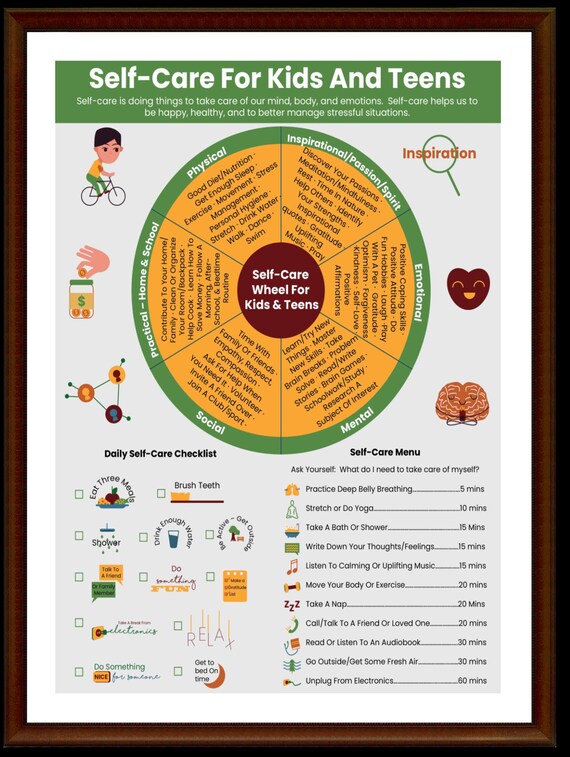 Self Care For Kids Teens Printable Poster Self Care Wheel Etsy